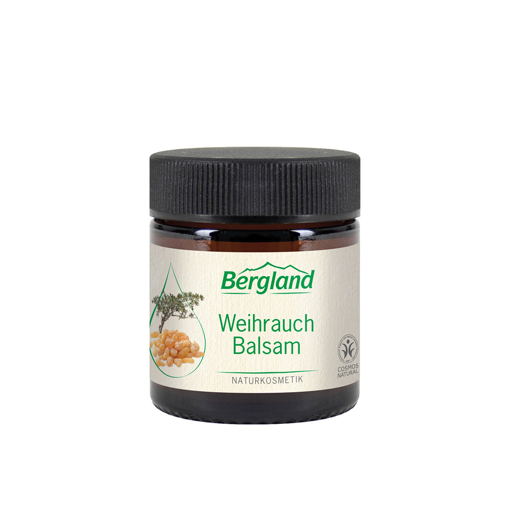 Weihrauch Balsam – wohltuende Pflege zur Massage von Hautpartien nach einem aktiven Alltag. Mit Weihrauch, Wintergrün und 100 % naturreinen ätherischen Ölen, mit natürlichen Pflanzenölen und Bio Sheabutter. Zertifizierte Naturkosmetik mit intensivem, grünen Duft und angenehmer Textur.