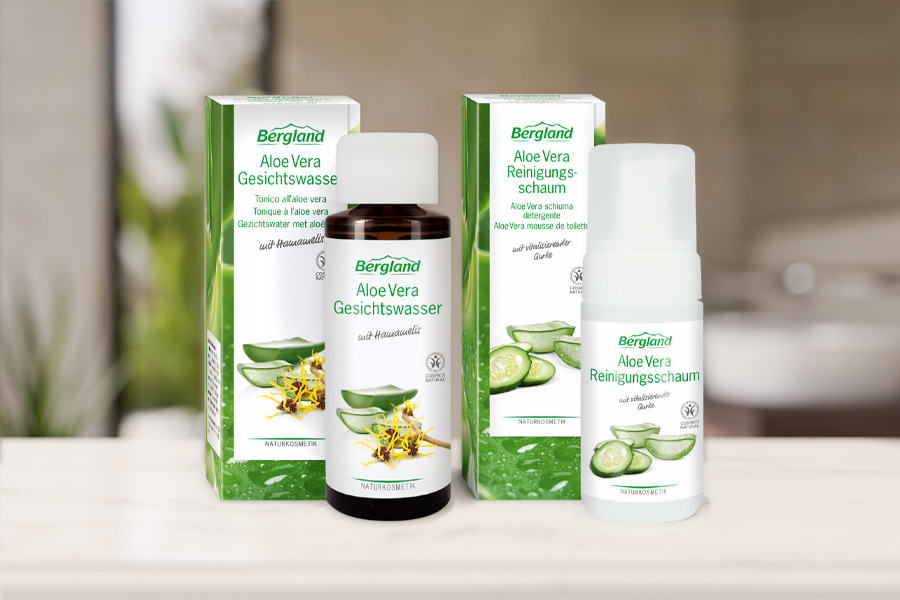 Ablagerungen, Schmutz und Make-Up können mit dem Aloe Vera Gesichtswasser und dem Aloe Vera Reinigungsschaum sorgfältig entfernt werden. Unsere milden Formulierungen schützen die Haut vor Feuchtigkeitsverlust, wirken rückfettend und harmonisierend. Danach ist unsere Haut bereit für die pflegenden Inhaltsstoffe unserer Aloe Vera Gesichtspflege.